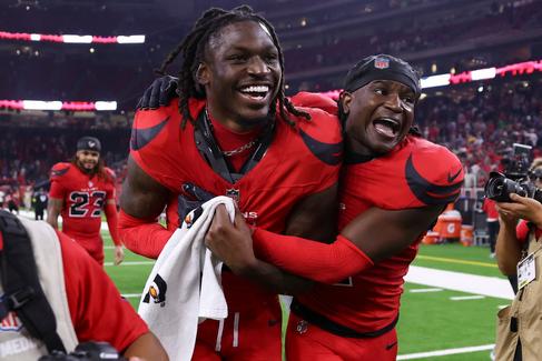 Will Anderson JR y Calen Bulloc celebrando otra victoria mas para el equipo tejano que fueron muchas esta temporada y eso se logro debido ala constancia que los jugadores del equipo tejano mostro juego a juego toda la tempoorada regular incluyendo los dos juegos de Playoff.