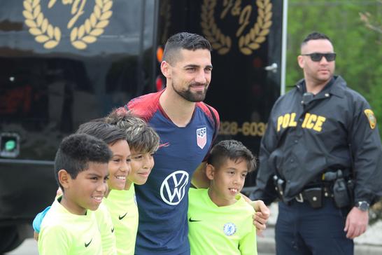 Jugadores compartiendo con los fans despues de la practica en Houston tx, en la antesala al juego cortra Chile el BBVA Compass Stadium.